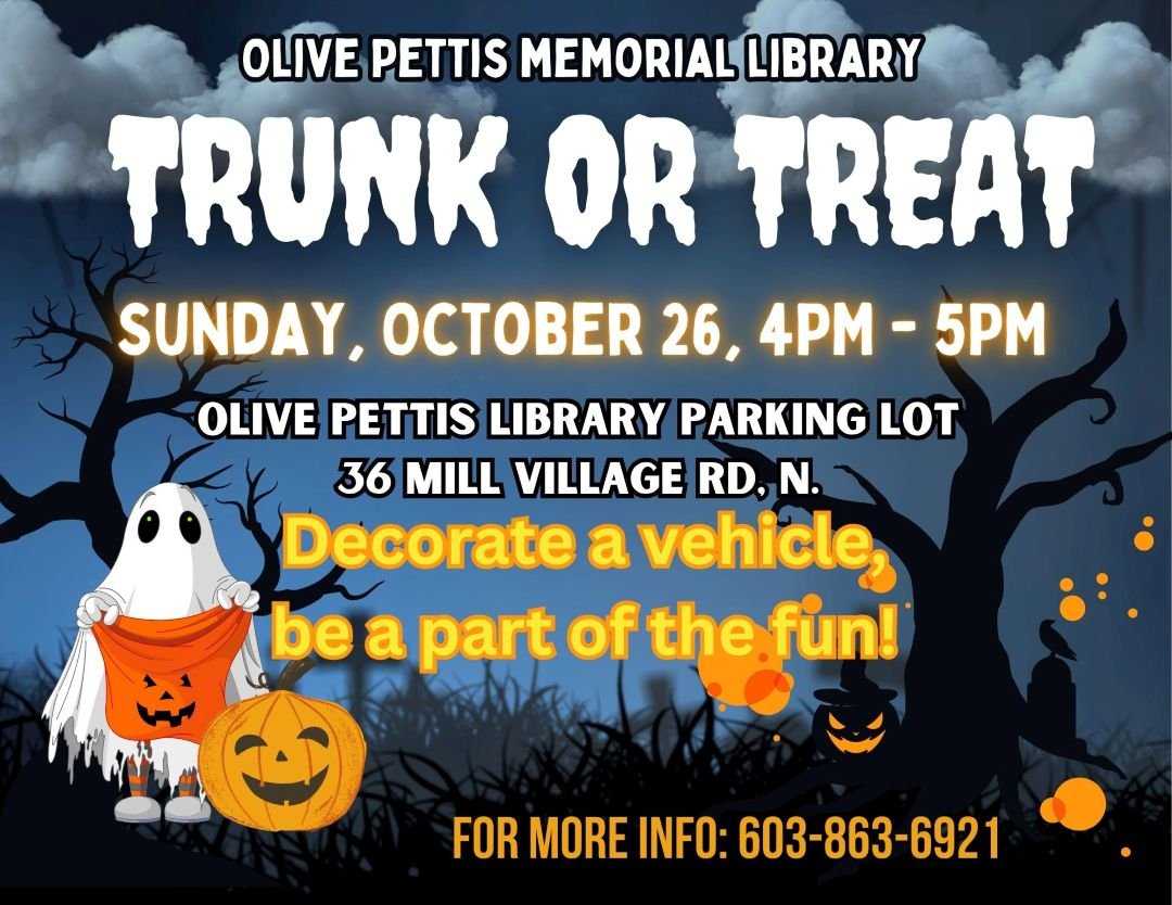Join us for our Trunk or Treat event and help us decorate a vehicle. We are looking forward to seeing you!
